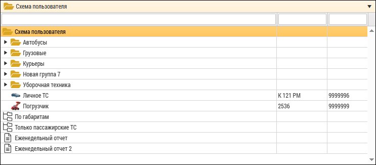 Для выбора также доступны виртуальные деревья схемы и списки объектов, сохраненные в детальных отчетах.