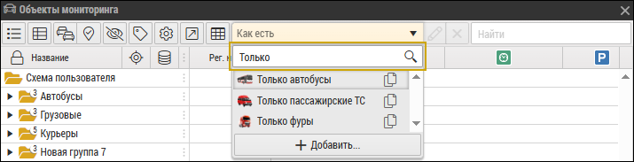 Для более удобной работы с большим списком объектов мониторинга в программе АвтоГРАФ.WEB предусмотрена альтернативная группировка этого списка через использование виртуальных деревьев.